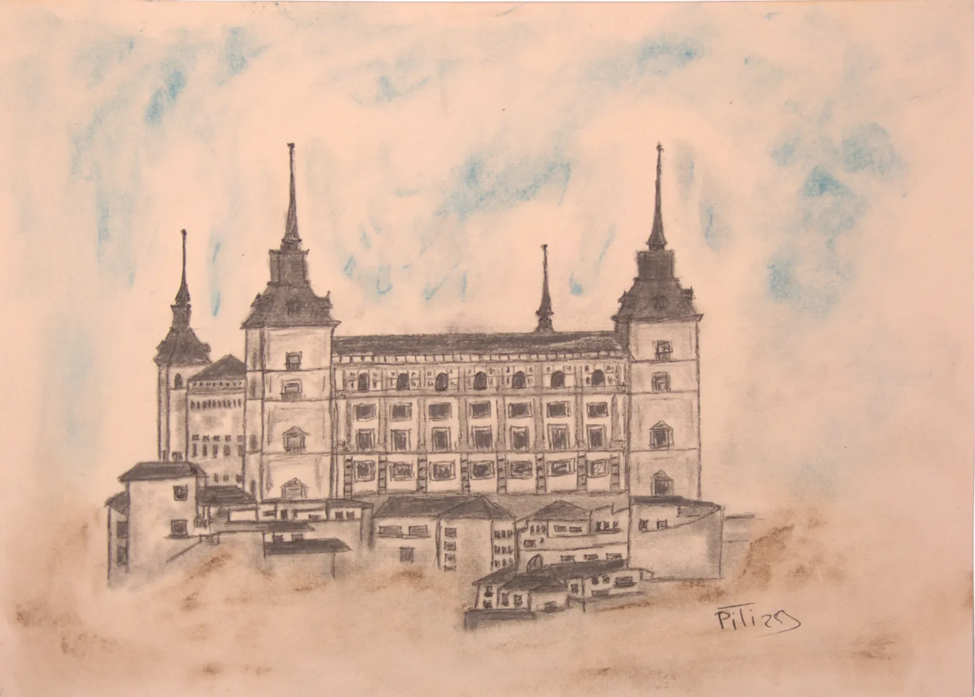 Alcázar de Toledo Marcador negro, lápiz de grafito sobre papel