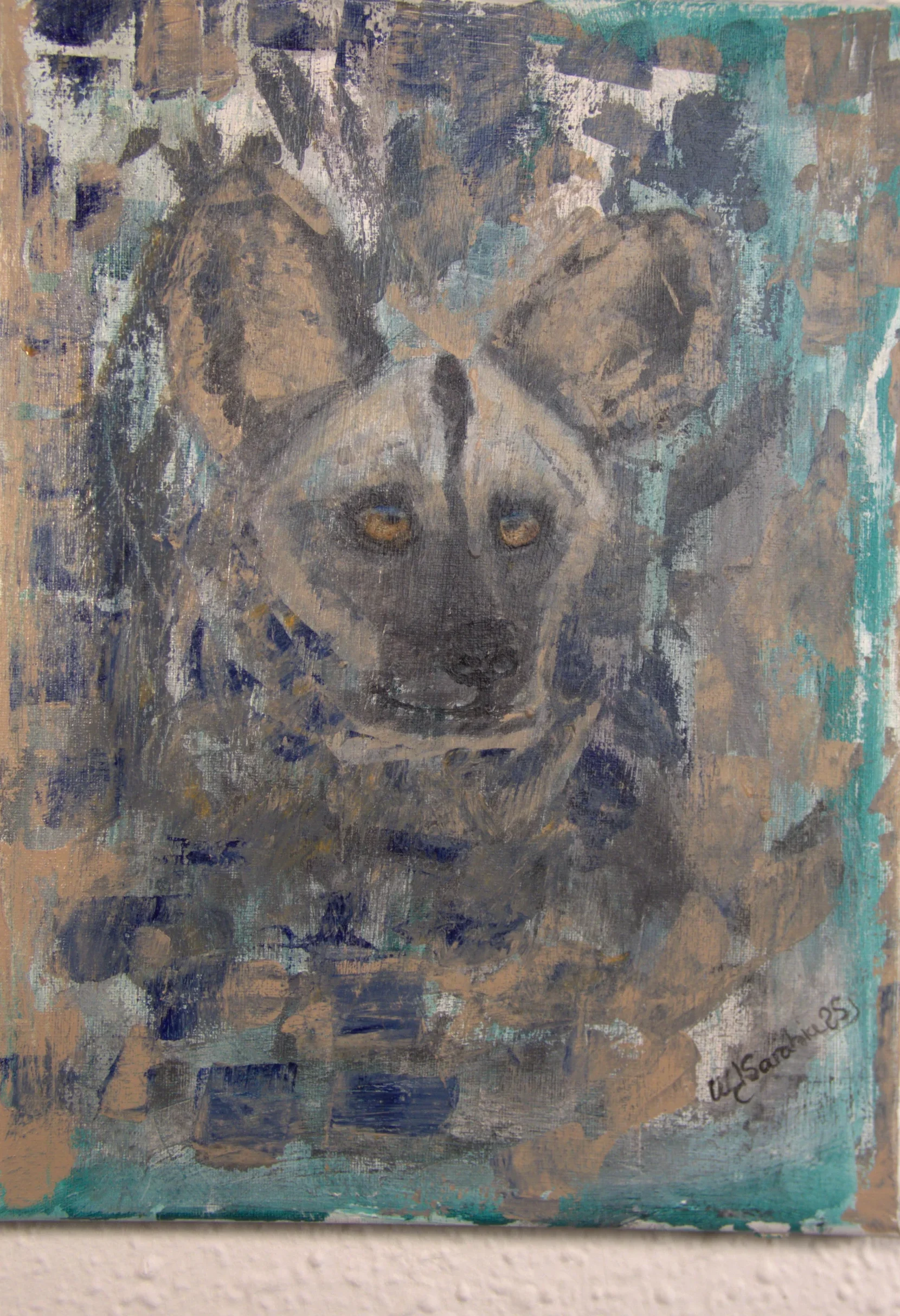 Once again I turn to Africa… this time it’s a wild dog drawn against an impressionistic background. I revel in this animal that travels great distances in pursuit of its prey, exhausting it before finally hunting it down…