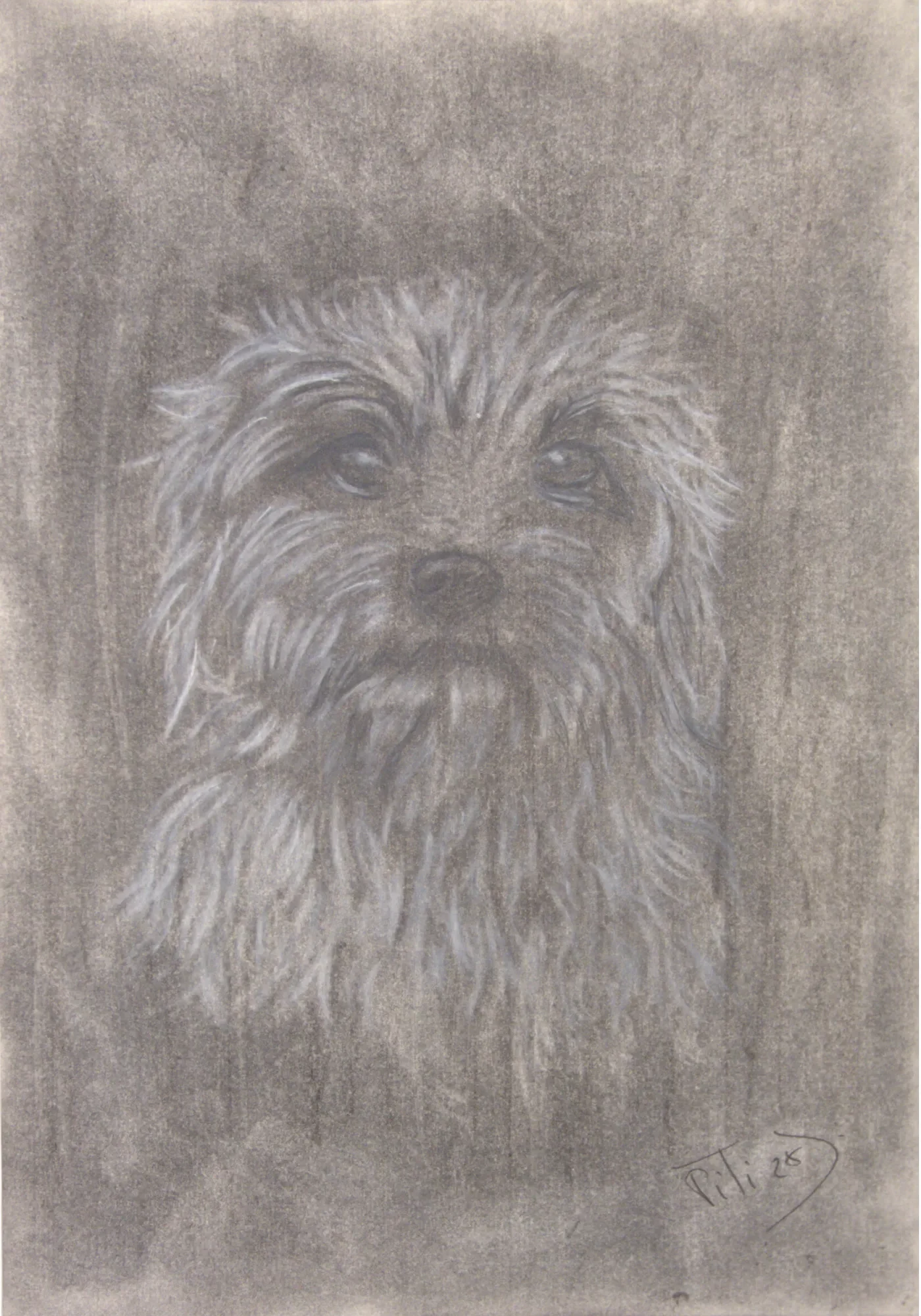 Step into the enchanting world of “Maltese Charcoal Painting,” a stunning monochromatic piece that beautifully encapsulates the gentle and affectionate nature of the Maltese breed. This artwork features a charming portrayal of a Maltese, highlighting its soft, flowing fur and sparkling eyes through expert shading and intricate detailing. The sophisticated contrasts in the charcoal create a rich texture that brings the dog’s playful yet serene spirit to life. “Maltese Charcoal Painting” is not just an artistic expression of a beloved companion; it also serves as a heartwarming addition to any space, evoking feelings of joy and admiration from everyone who encounters it.