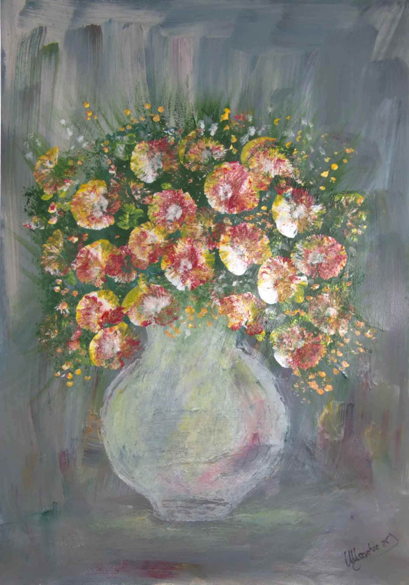 Discover the vibrant world of “Happiness,” a captivating flower painting created with acrylic and gouache. This artwork bursts with color and life, embodying the joy and beauty of nature. Each brushstroke brings the flowers to life, inviting viewers to immerse themselves in a serene yet uplifting atmosphere. Perfect for brightening any space, this piece is a celebration of happiness and the wonders of the floral realm.